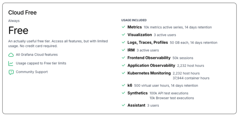 The Grafana stack has its own databases for storing Metrics, Logs, Traces and Profiles and in the case of logs the database is called Loki - It is worth mentioning that Grafana cloud includes a generous free tier that includes 50 GB of monthly ingestion for logs, traces and profiles as well as a hefty amount of usage for many of Grafana's other features such as k6 load testing, synthetics testing and kubernetes monitoring.